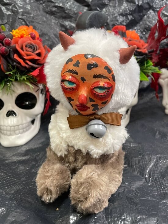 Handmade plush  doll. The face is made of clay.  It’s a cute Halloween and Christmas gift.  Average doll size: 6, 299 – 7, 087 inches