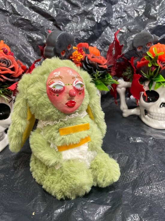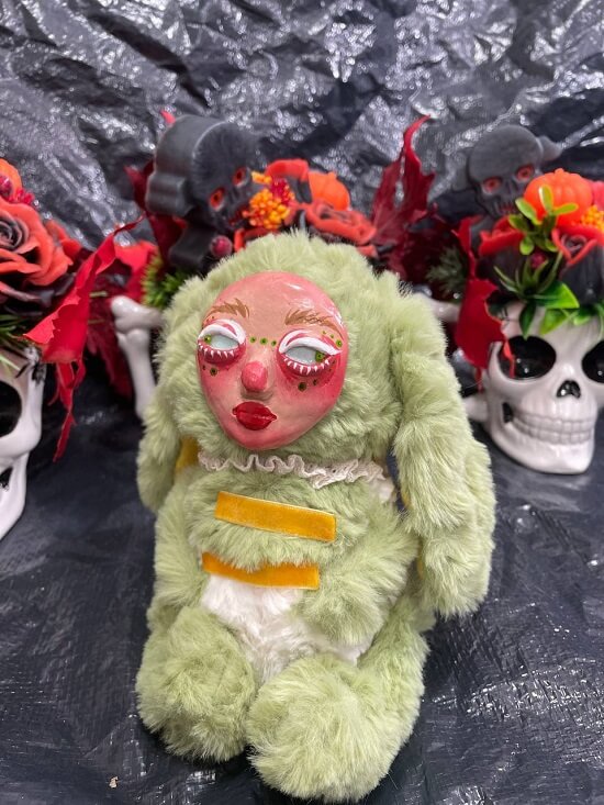 Handmade plush  doll. The face is made of clay.  It’s a cute Halloween and Christmas gift. Average doll size: 6, 299 – 7, 087 inches