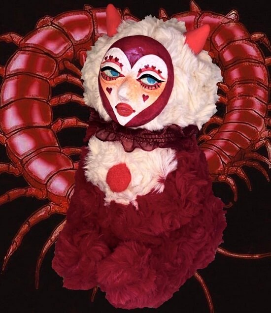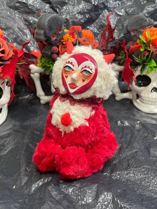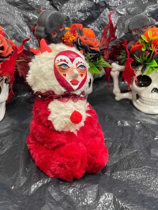 Handmade plush  doll. The face is made of clay.  It’s a cute Halloween and Christmas gift.   Average doll size: 6, 299 – 7, 087 inches